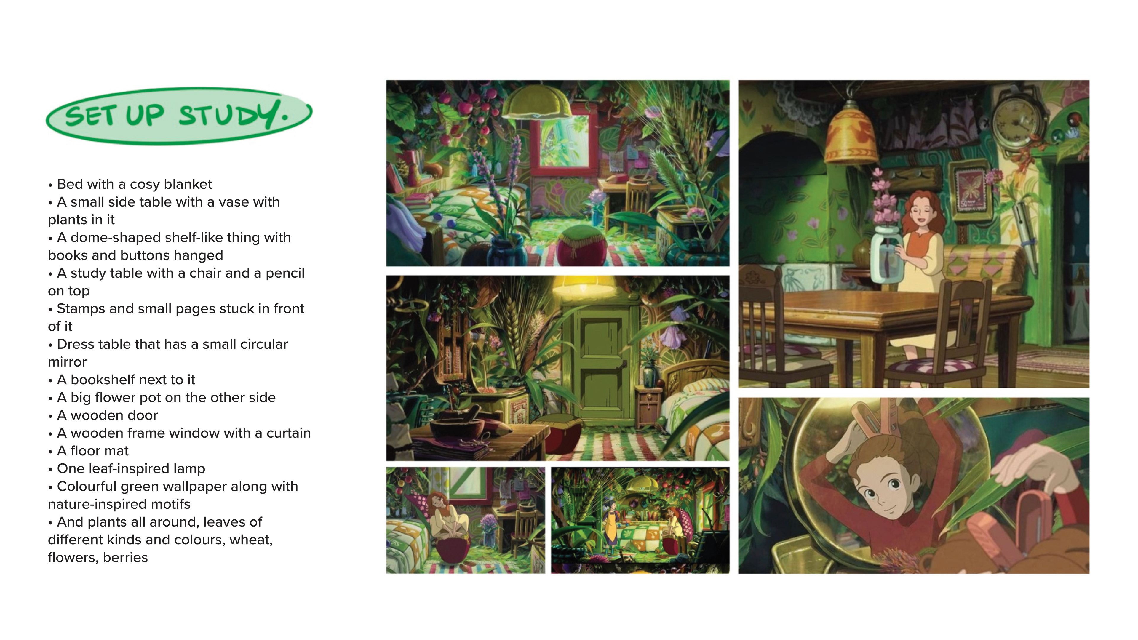 Inspired by Studio Ghibli’s The Secret World of Arrietty, this project explores how scale, texture, and light can bring storytelling to life in 3D. The aim was to recreate the warmth and intricacy of Arrietty’s miniature world while studying spatial design and cinematic atmosphere