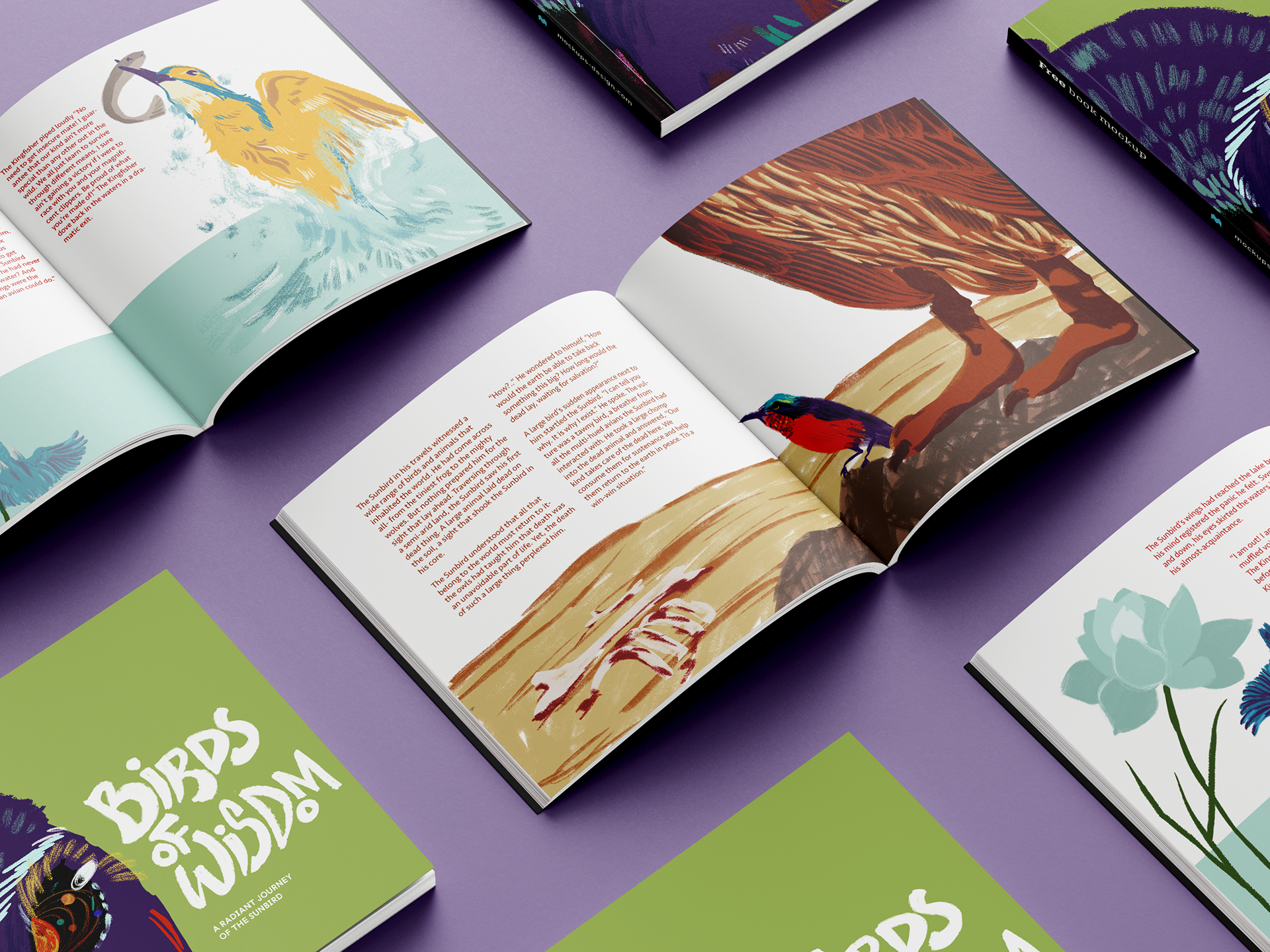 This coffee table book follows a young Sunbird on its first journey away from home. Along the way it meets different birds, each encounter revealing a new perspective on life, nature, and self-discovery.