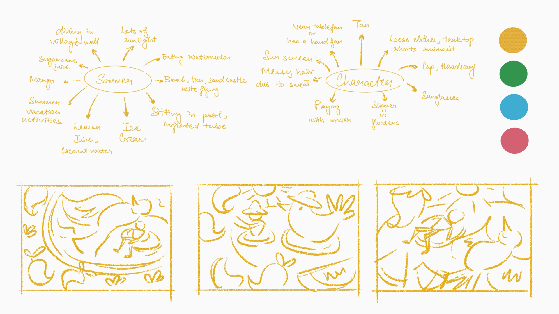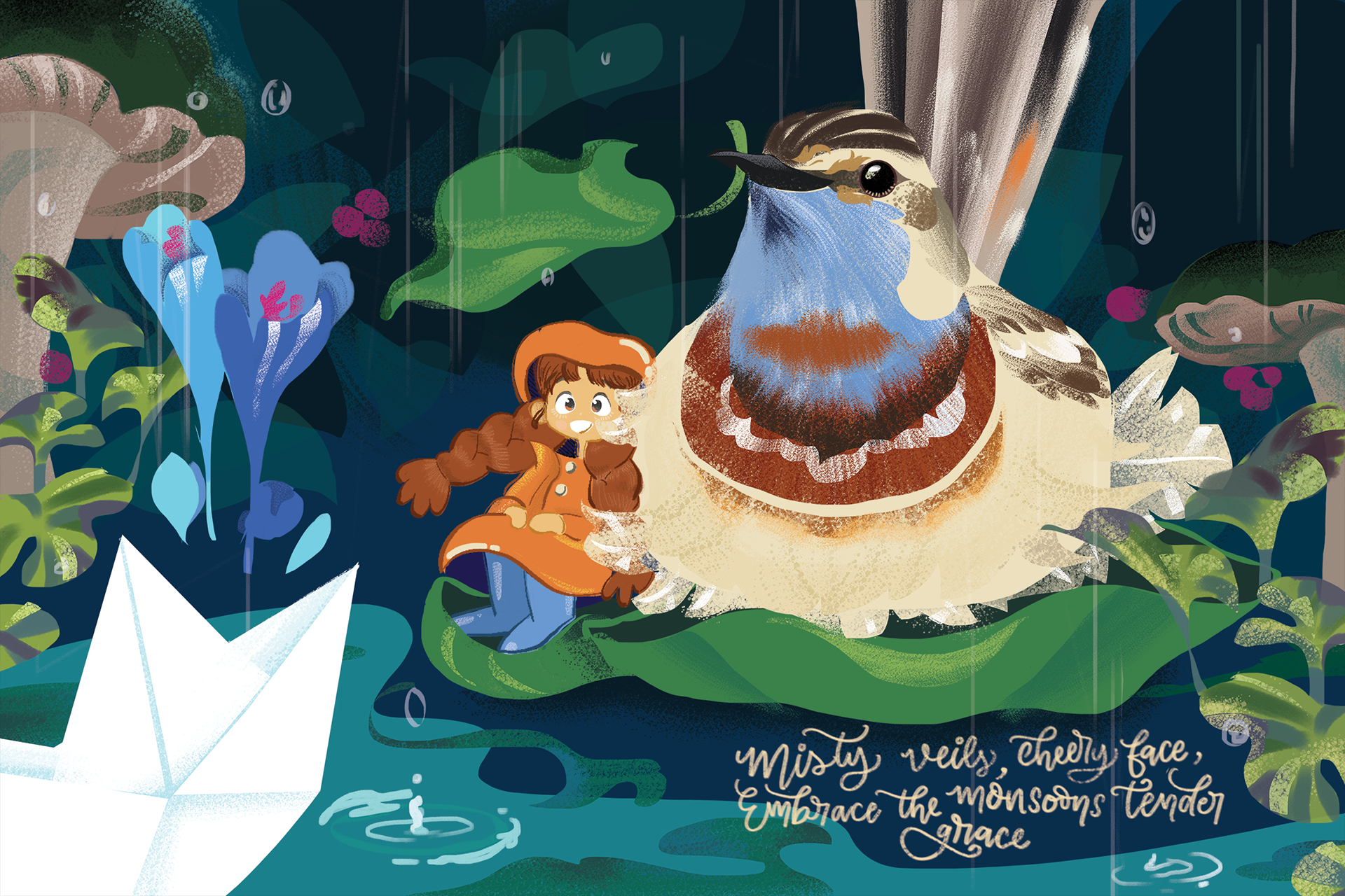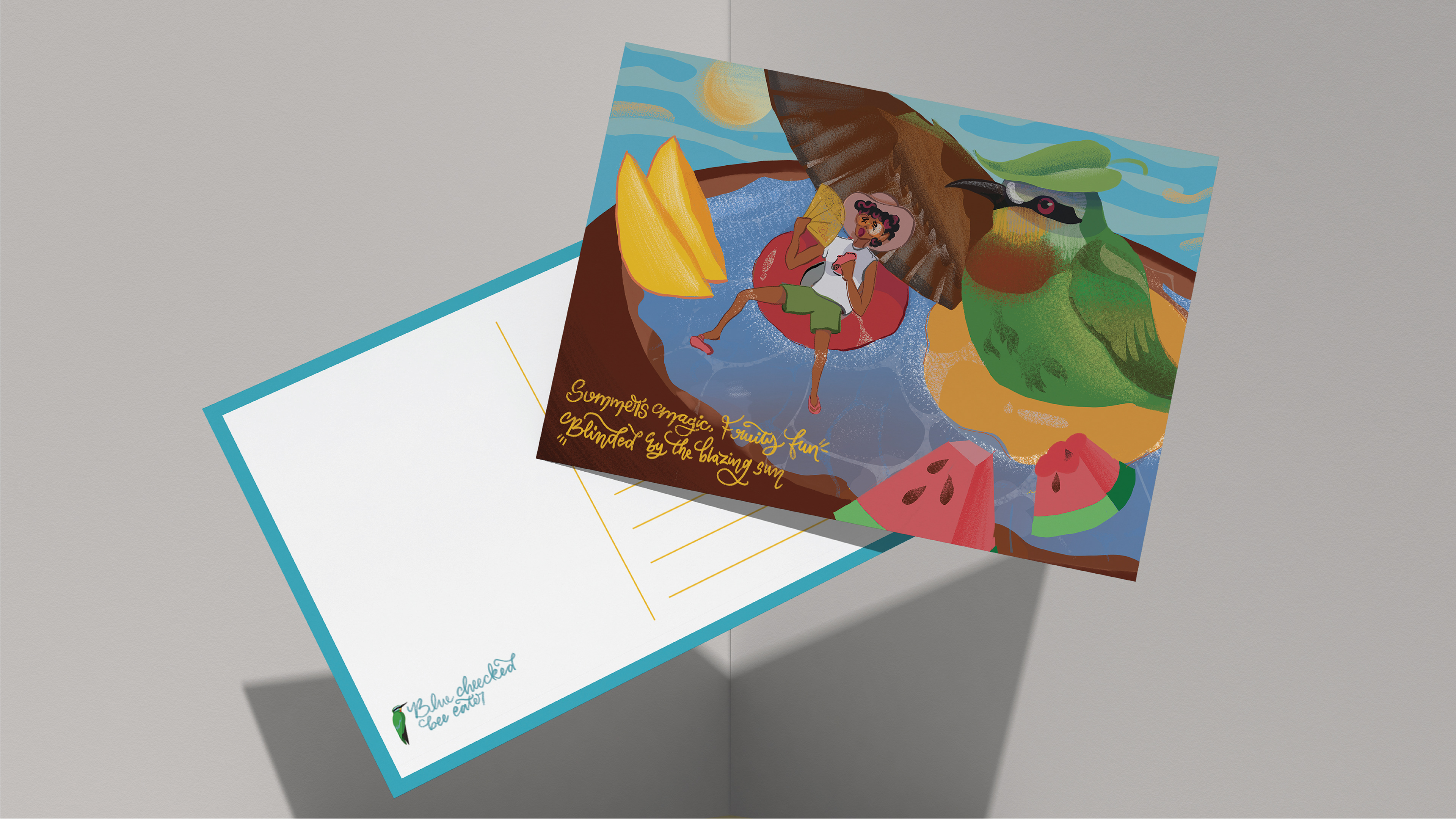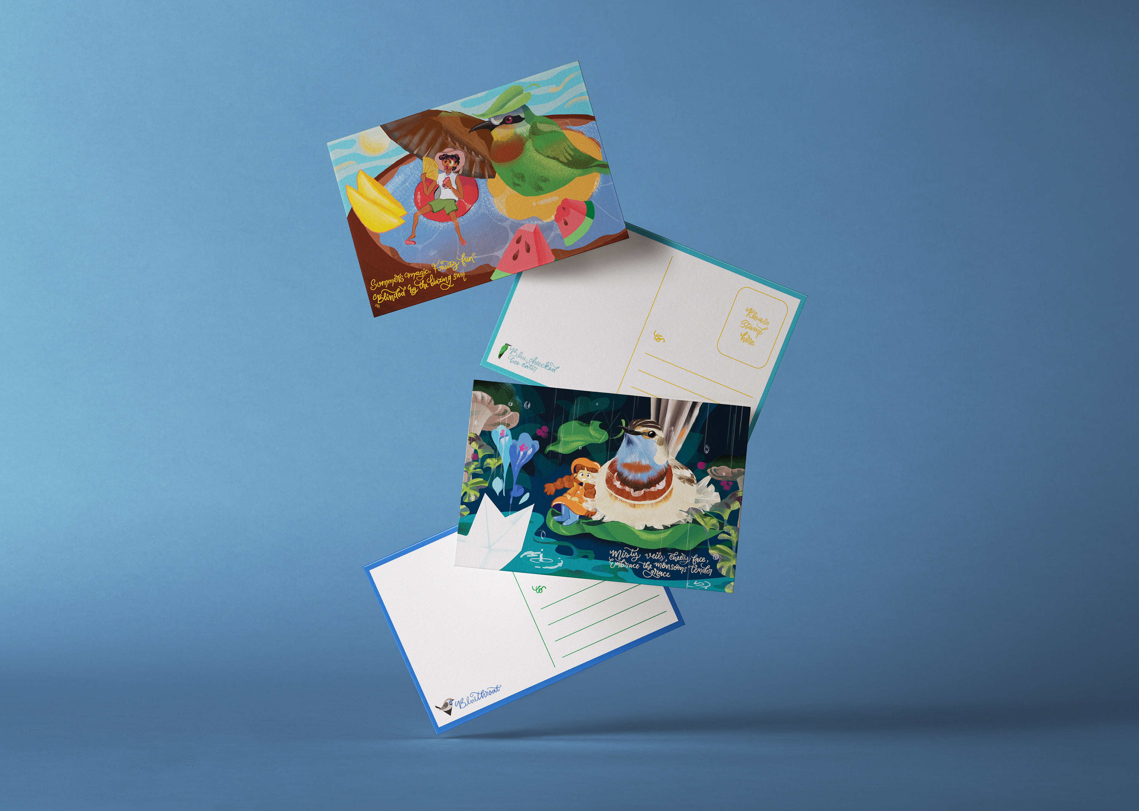 We selected birds that arrive in India during winter, monsoon, and summer. After researching their behavior and seasonal characteristics, I translated each bird’s essence into an expressive character using posture, shape, and color. The final postcards balance illustration and storytelling, showing how both birds and postcards carry moments across distances.